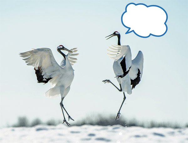Cran1:Hey. Crane2:Hi. Crane1: Wanna be fens? Crane2: Sure