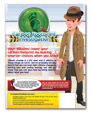 The Carbon Footprint Investigation Mission promotes responsible consumerism by helping kids discover the carbon footprint that’s associated with common household purchases. By investigating what products are made of, how they’re packaged, and where they were made, kids can better understand the environmental impact of the things they buy.